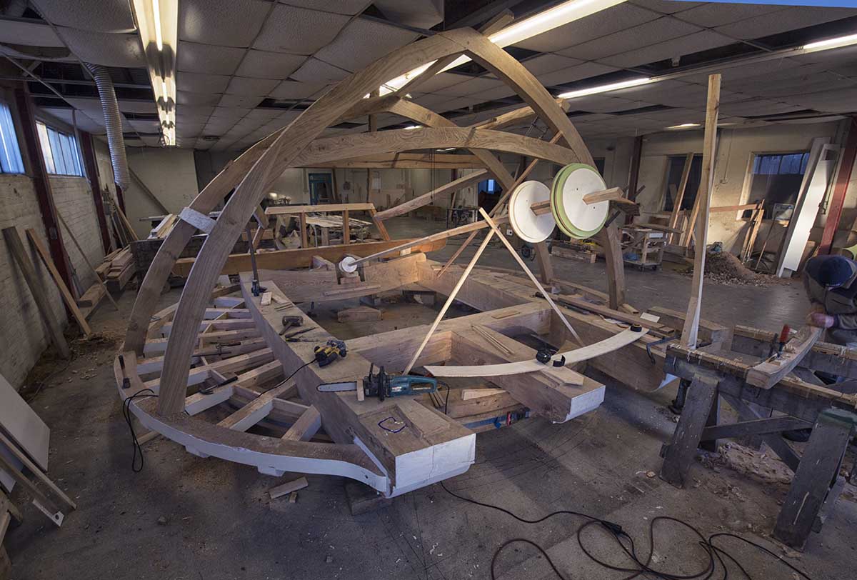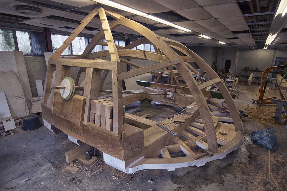 Zowel het boventafelement, kruivloer, kuip als de kap zijn in de werplaats in Krommenie helemaal gebouwd. Er was net genoeg ruimte tussen vloer en plafond voor de kap.